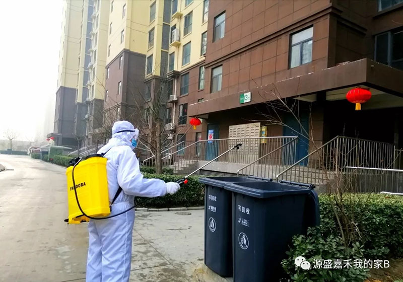 就这样,他每天背着30多斤的喷雾器,做好垃圾桶、健身器材、平台等公共区域的清洁消杀工作,这也是他每天的“必修课”。每天彻底消毒完毕后,他的心里才会踏实。
